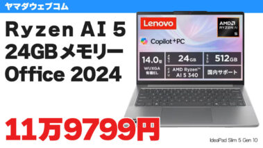 セール情報 Ryzen AI 5+24GBメモリー+Office 2024ノートPCが11万9799円