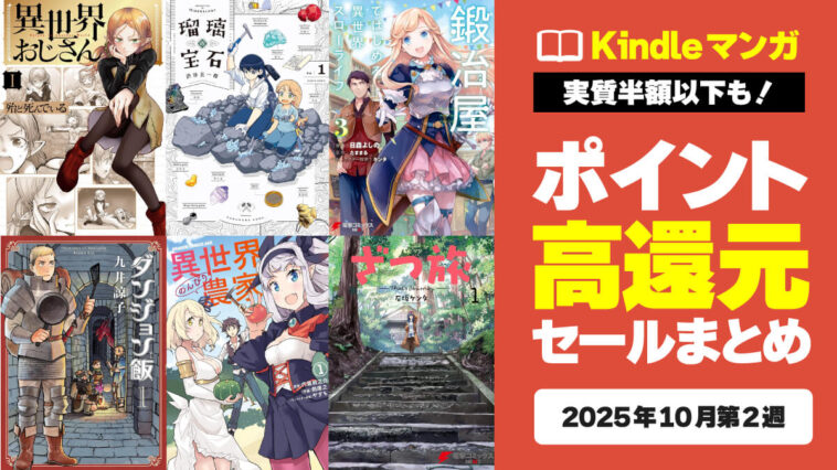 ポイント還元率が高いKindleマンガまとめ【10月第2週】