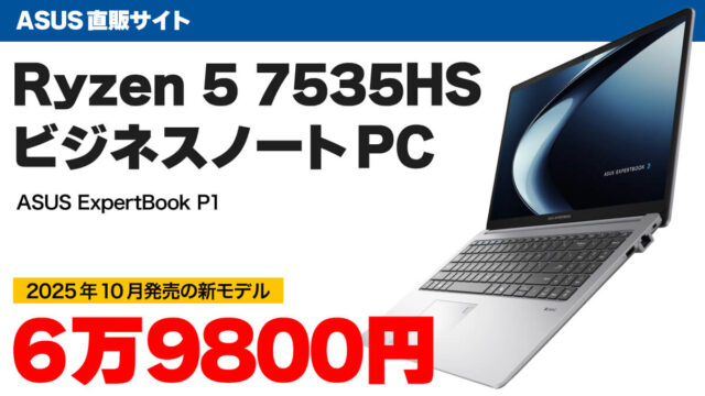 エントリー向けの14インチタイプ。CPUとして使われているRyzen 5 7530Uの性能はほどほどですが、普段使いや軽めのビジネス作業には問題ないでしょう。筐体やディスプレイのパネルは格安機向けで、品質はいまひとつ。多少の傷が気にならないならアリ。