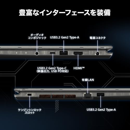 Ryzen 7 7730U搭載で8万円切りのスタンダードタイプ。値段は安いもののテンキーがクセのある3列構成で、さらにType-Cは映像出力に対応していない点に注意。